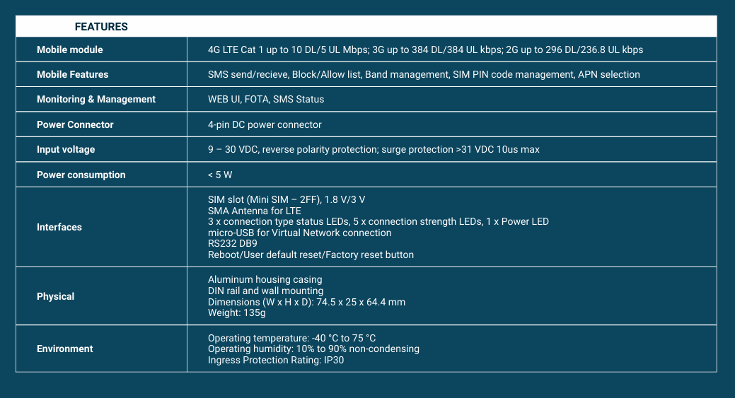4G LTE modem for SMS Notifications with RS232 Interface, compact Industrial Design & 4G LTE Connectivity